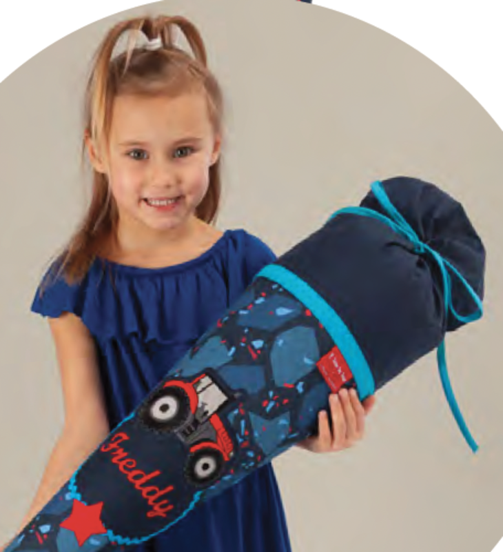 Handgefertigte Stoffschultüte in Rot und Blau mit Traktor. Der perfekte Begleiter für den ersten Schultag. Passend zum Step by Step Schulranzen Tractor Freddy. I Bietet genug Platz für kleine Überraschungen. I Jetzt online bestellen!